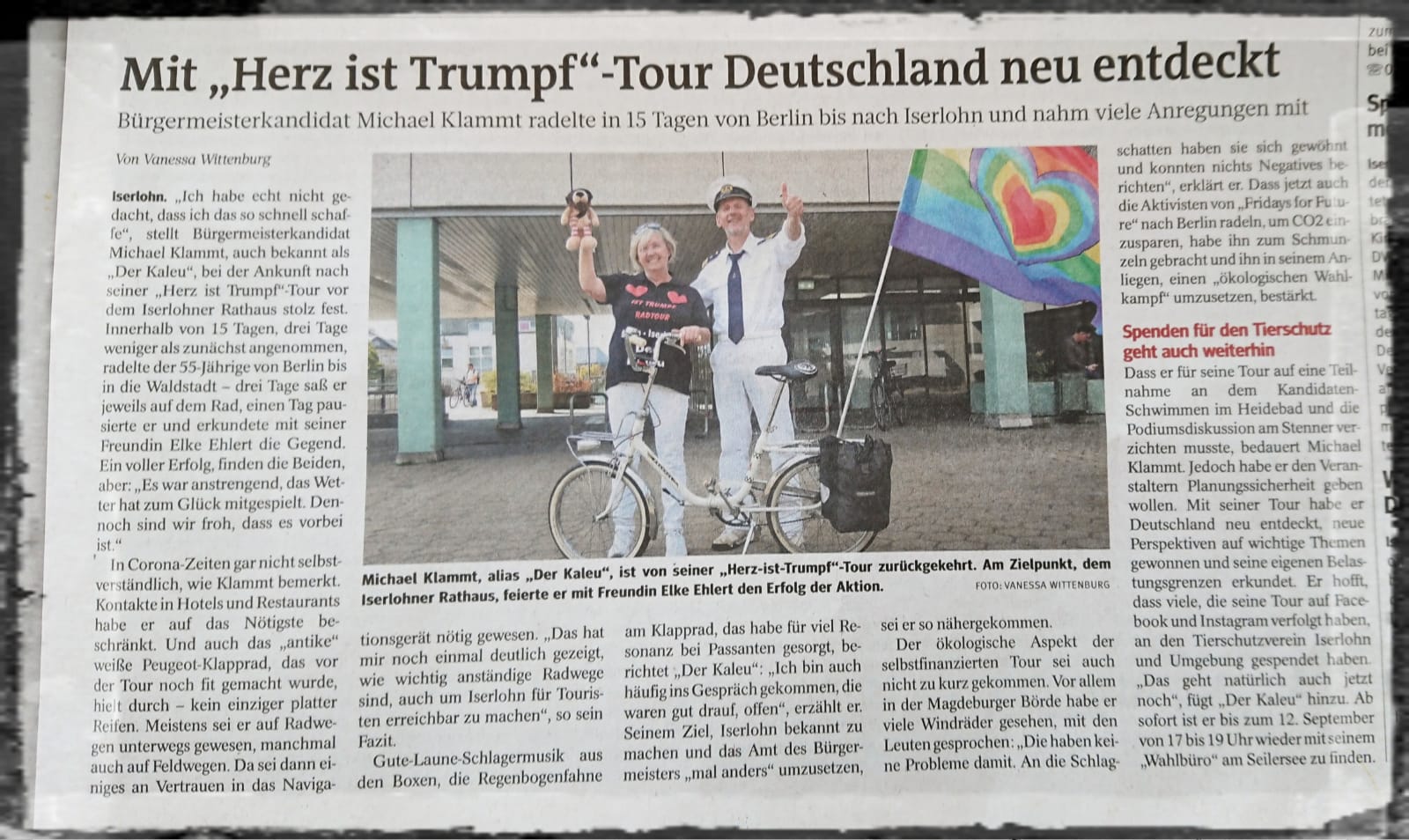 " HERZ IST TRUMPF " Fahrradtour : Berlin - Iserlohn 500km
