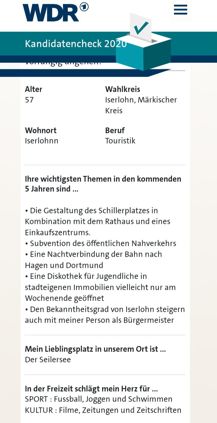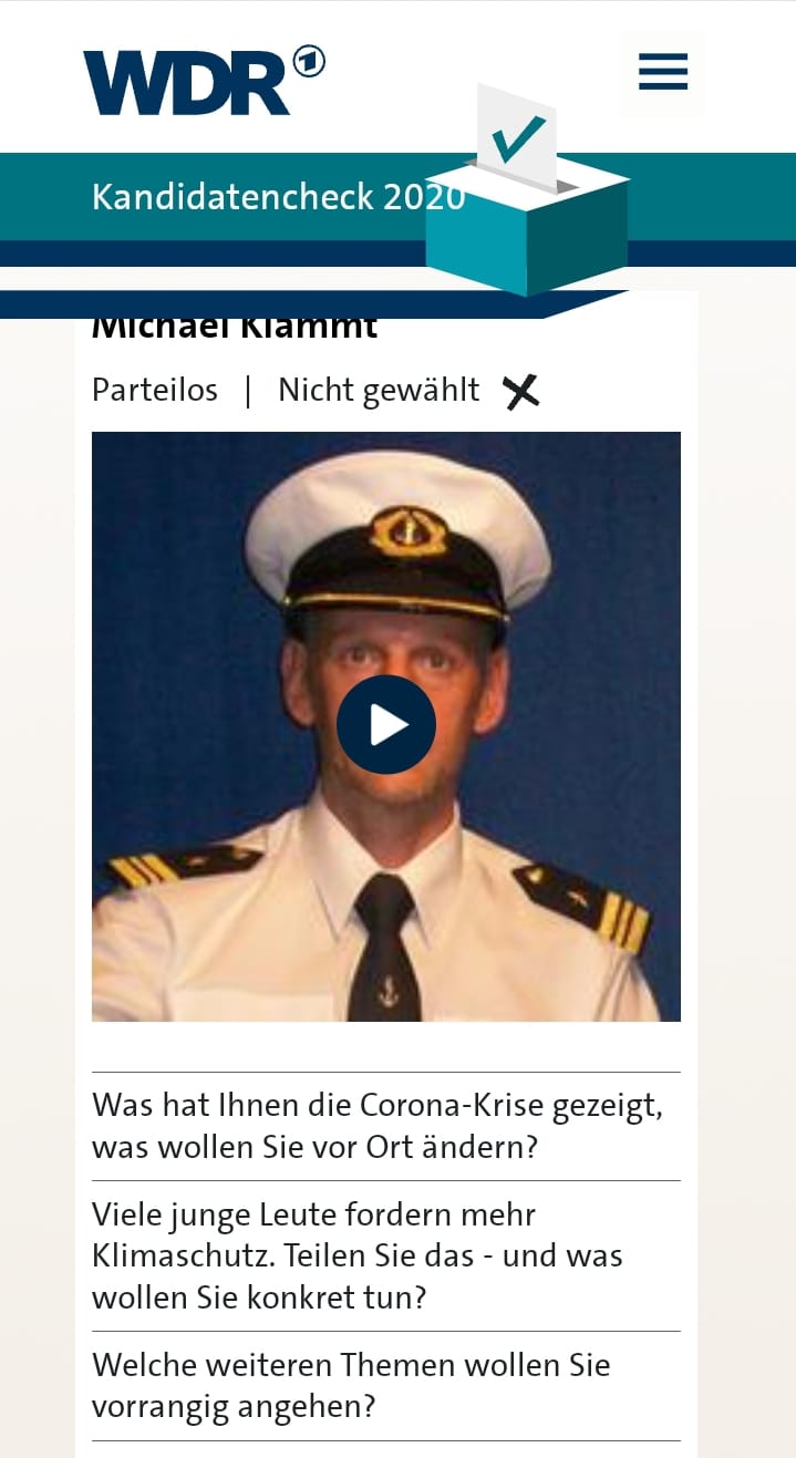 "WDR Buergermeister Kandidatencheck 2020 : Das Video ist beim WDR online anzuschauen